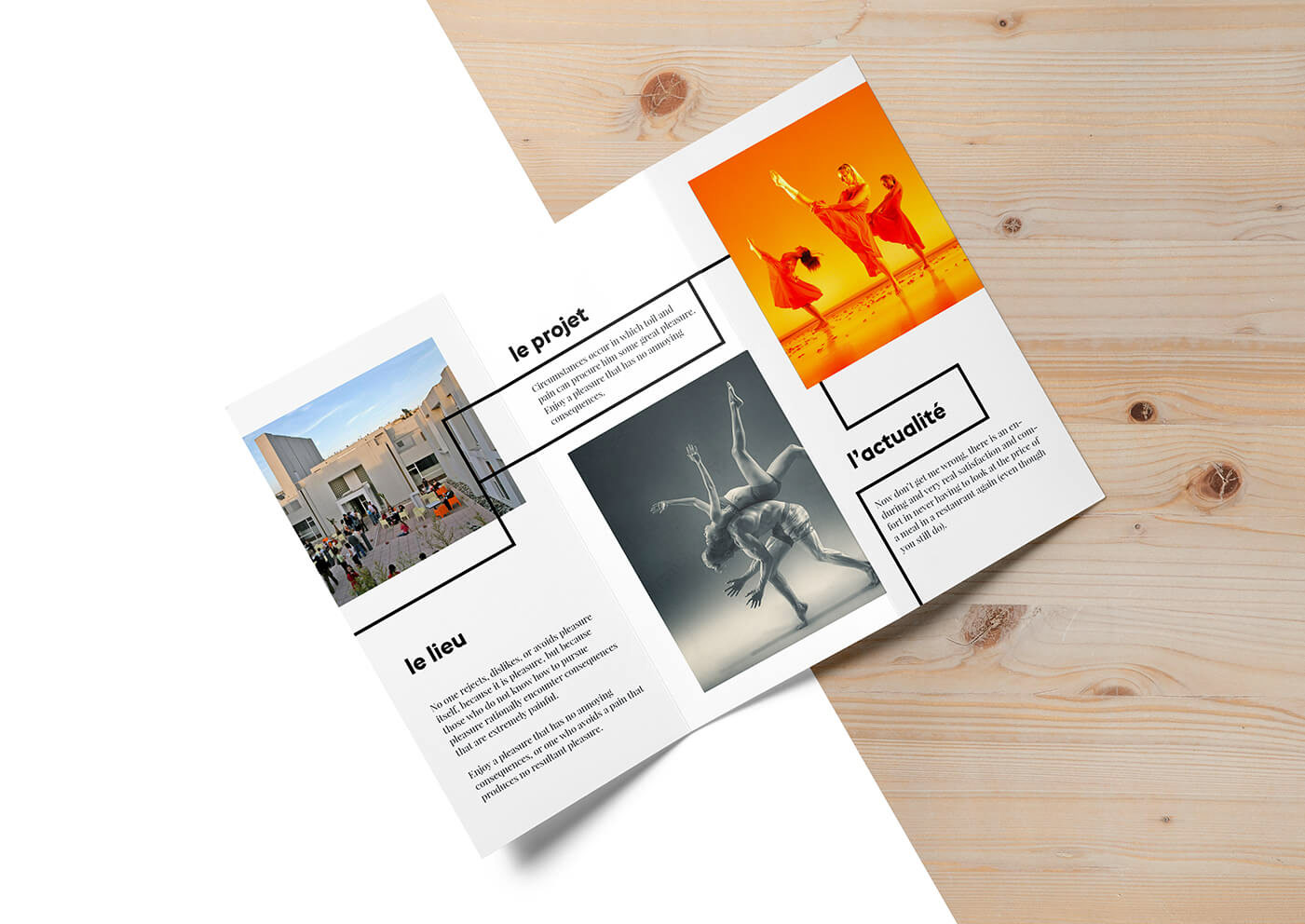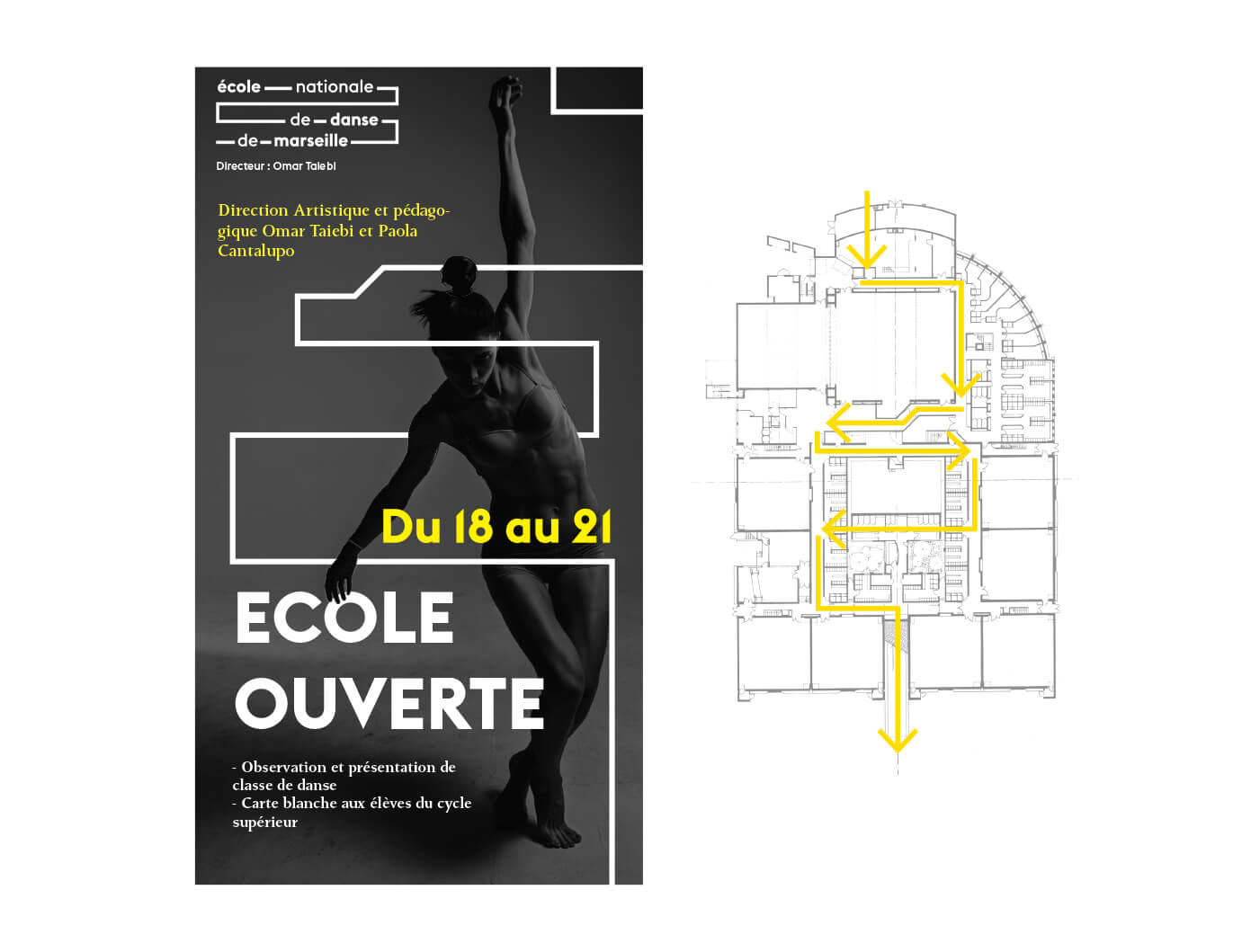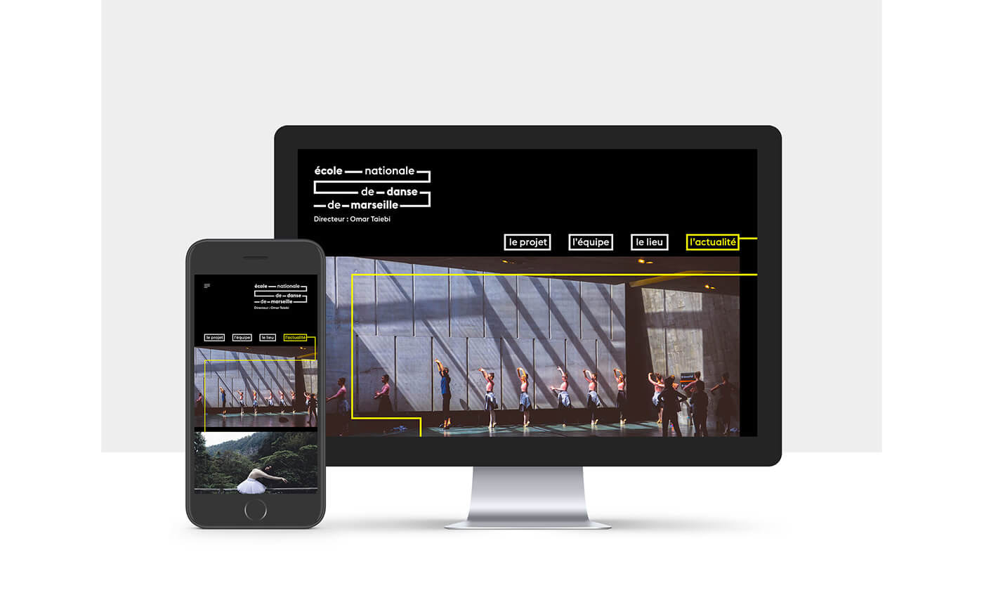 Création de l'identité visuelle pour l'école Nationale de Danse de Marseille ainsi que touts les supports de communications print et web et également la signalétique du lieu.