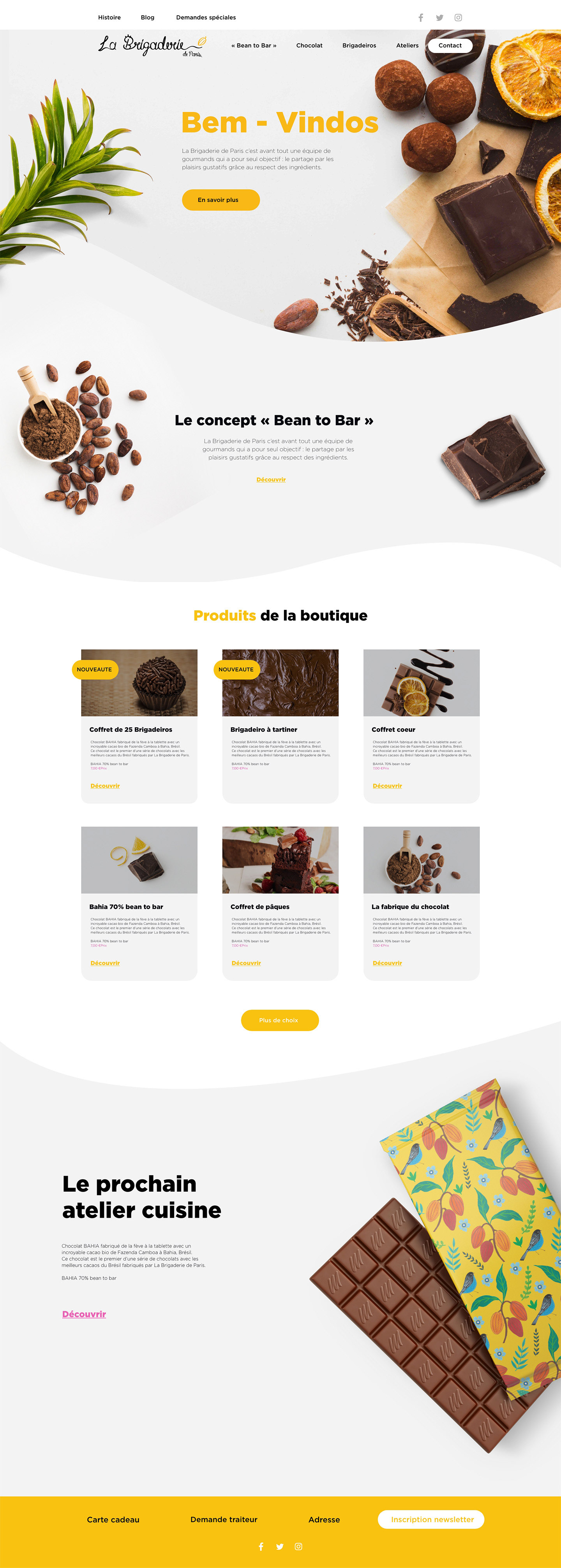 webdesign, ui & ux design du site la brigaderie de paris qui propose des chocolats bean-to-bar et des brigadeiros dans sa boutique en ligne.