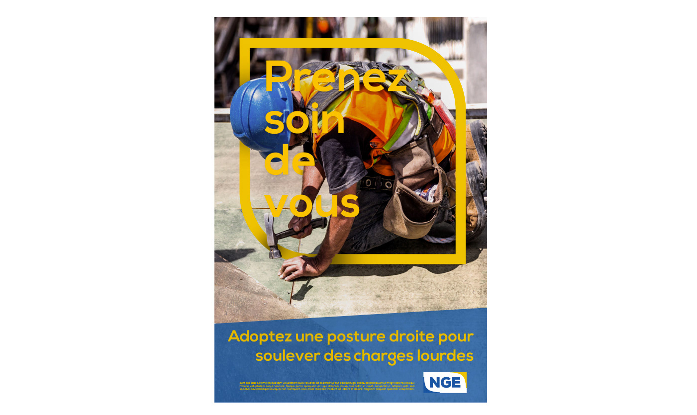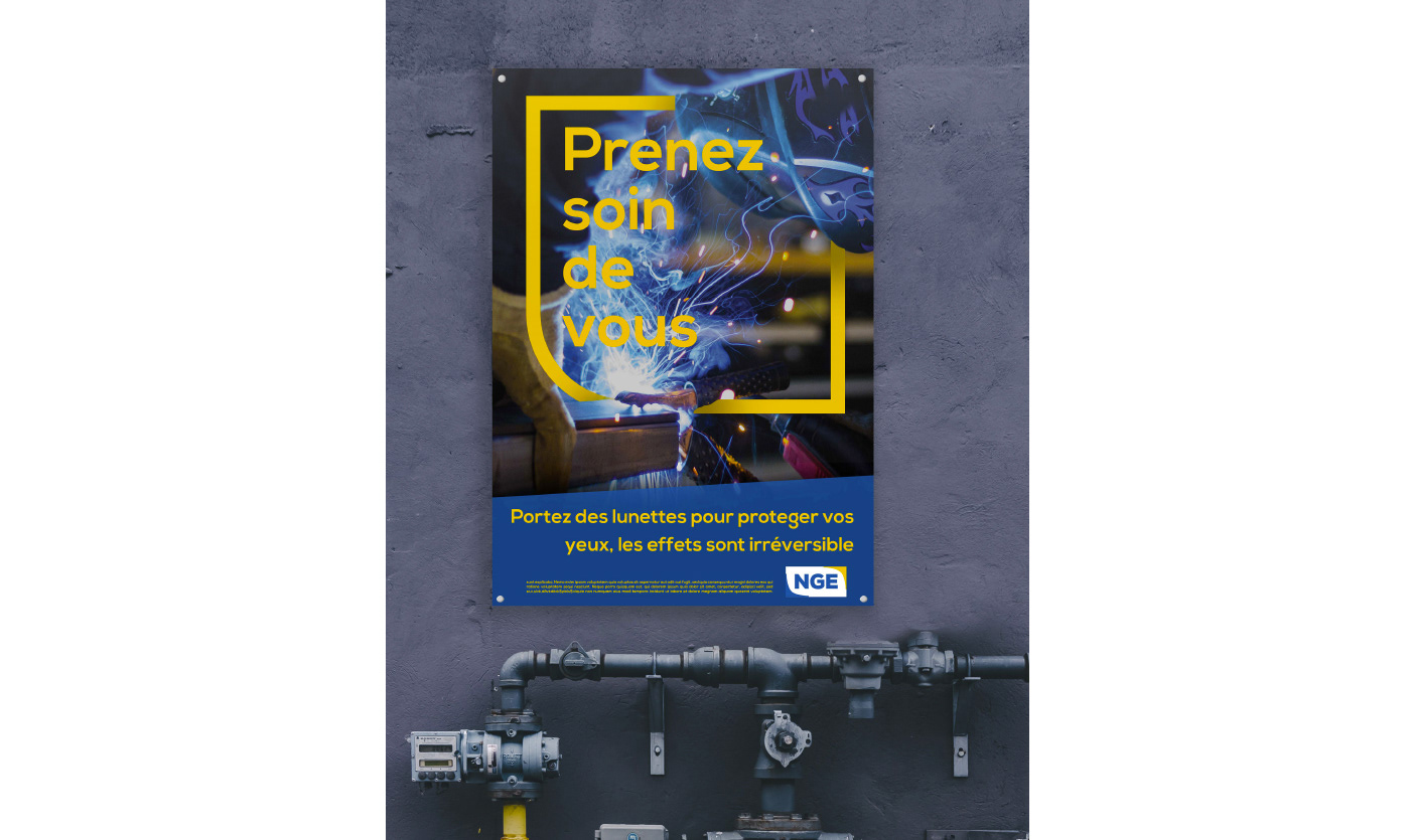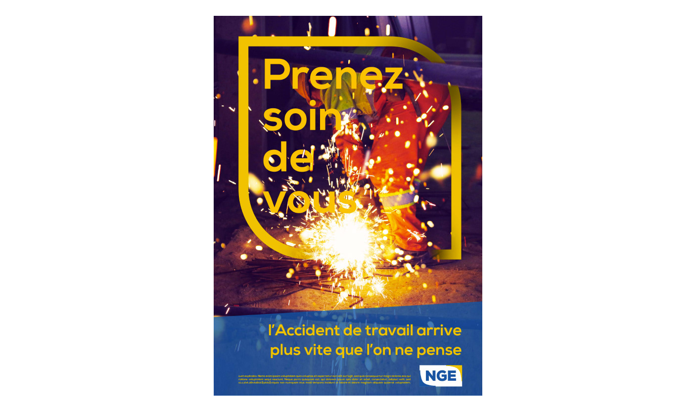Elaboration de toute la campagne de prévention sur les risques liés au travail : Affiches, panneaux signalétiques et exemples de l'utilisation de cette charte pour le site web et des outils de communication divers.