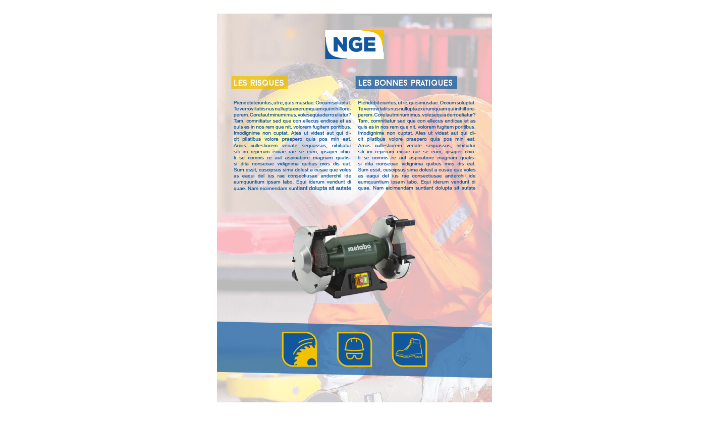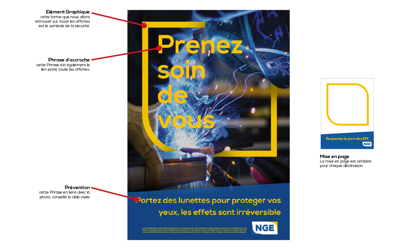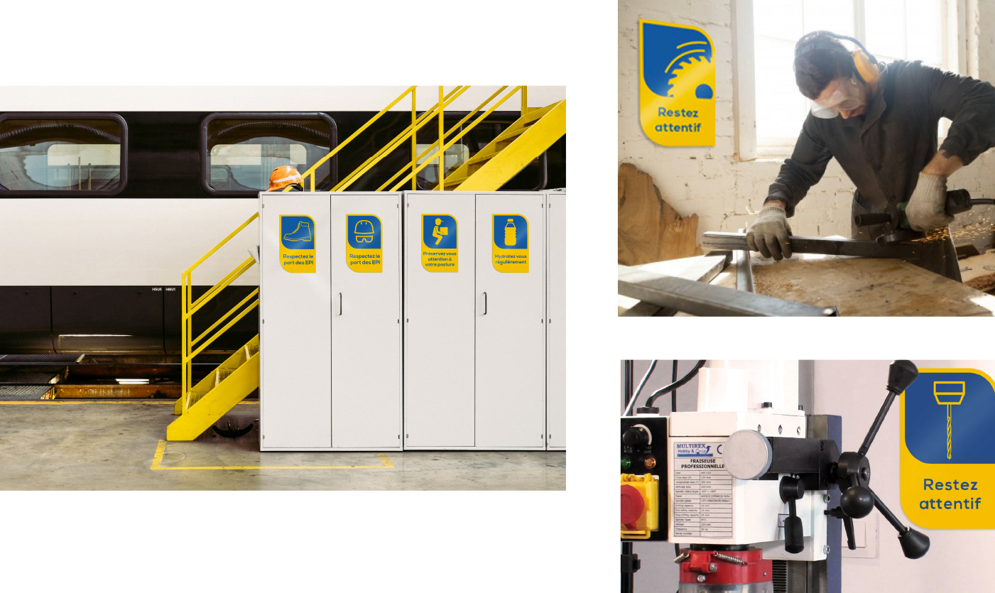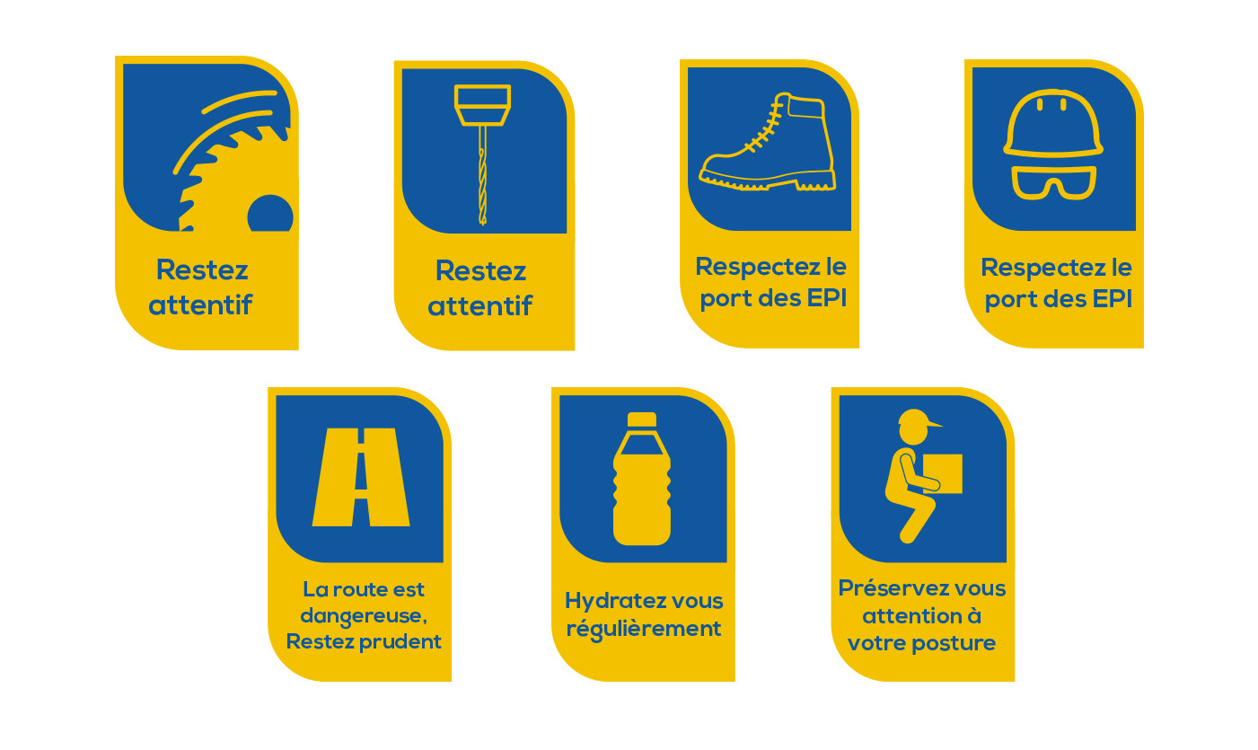 Elaboration de toute la campagne de prévention sur les risques liés au travail : Affiches, panneaux signalétiques et exemples de l'utilisation de cette charte pour le site web et des outils de communication divers.